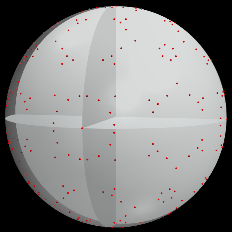 Beispiele als o2c-Objekte: auf der Oberfläche der Kugel mit dem Radius R=25 liegen 150