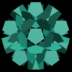 12 Dodekaeder platziert auf einem Ikosidodekaeder bilden ein Doroid.