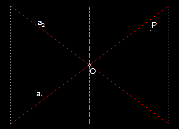Gegeben sind beide Asymptoten einer Hyperbel und ihr beliebiger Punkt P (wie unten dargestellt).
