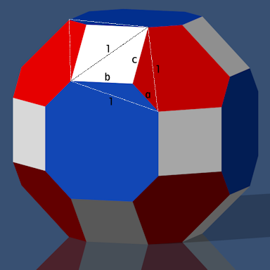Die Kanten a, b und c haben folgende Längen: a = 0,38784, b = 0,66184 und c= 0,74965.